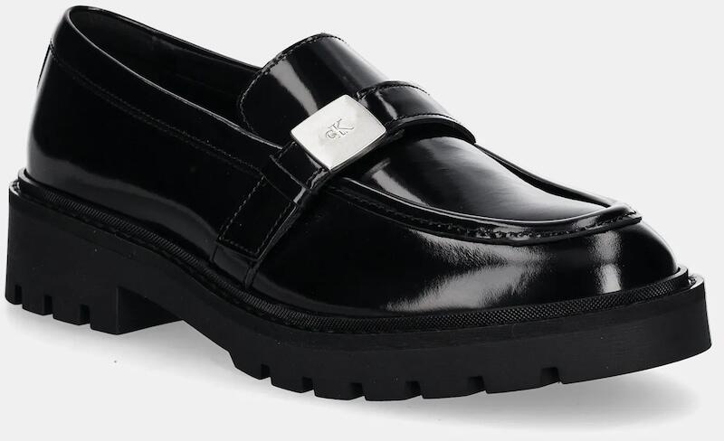 Calvin Klein Jeans bőr mokaszin FLATFORM SHOE DRIVER HDW fekete, női, lapos talpú, YW0YW01657 - fekete Női 39