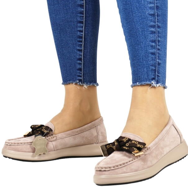 Filippo Női Bőr Papucs Masnival Platform Bézs Nubuk Kényelmes Új (6457 BEŻOWE)