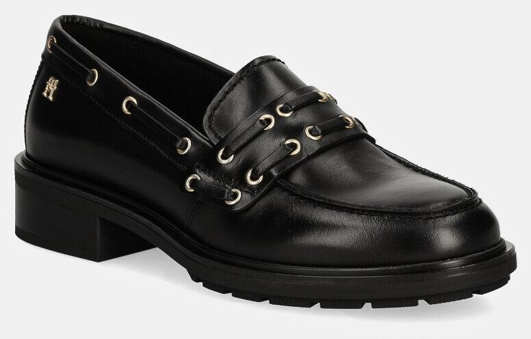 Tommy Hilfiger bőr mokaszin NAUTICAL EYELETS LEATHER LOAFER fekete, női, platformos, FW0FW08148 - fekete Női 41