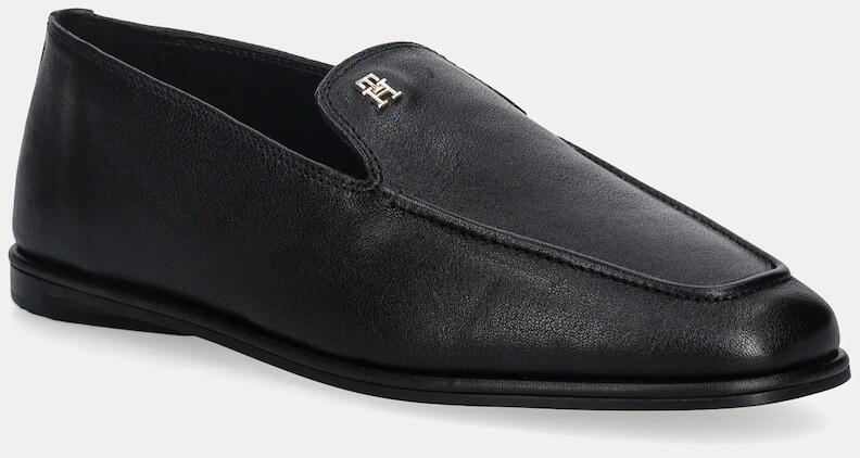Tommy Hilfiger bőr mokaszin TH LEATHER LOAFER fekete, lapos talpú, FW0FW09319 - fekete Női 38