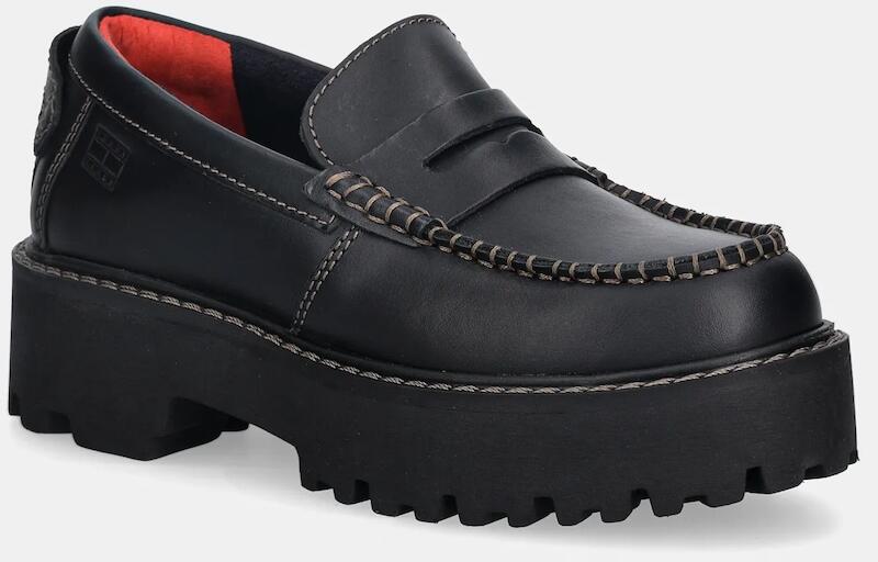 Tommy Jeans Tommy Hilfiger bőr mokaszin ARCHIVE 01 LOAFER LEATHER fekete, platformos, EN0EN03005 - fekete Női 37