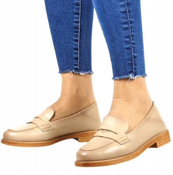 VINCEZA Bézs Bőr Papucs Női Bebújós Félcipő Kényelmes Puha Vinceza 39 (18100 BEŻOWE)